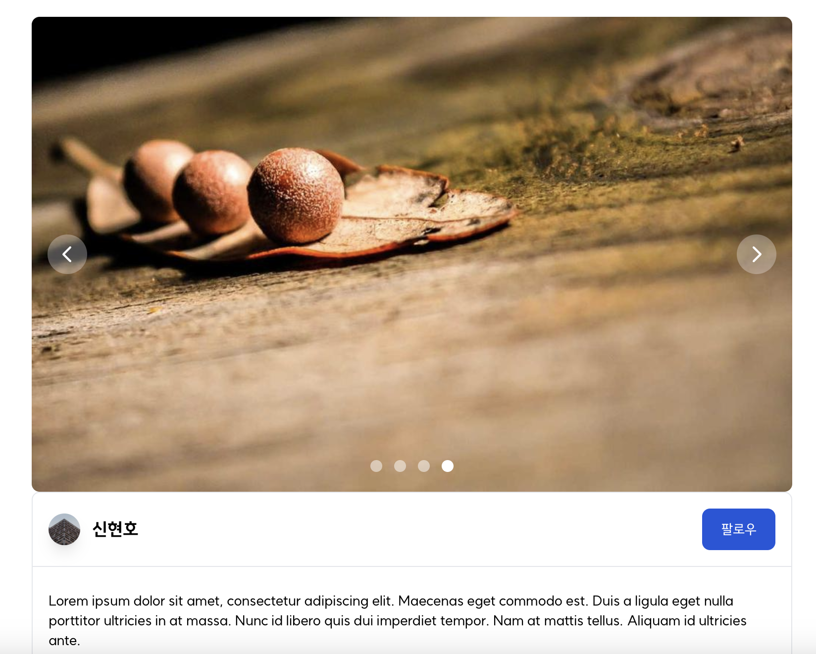 따라서 이러한 문제를 해결하기 위해서는 재사용하려는 컴포넌트에는 정말 공통적인 것들만 남겨두고, 고유한 것들은 속성으로 전달하는 방법이 있겠습니다.