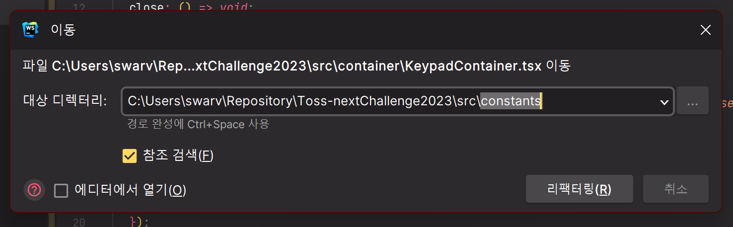 Webstorm에서는 저 리팩터링 버튼 하나면 관련된 모든 파일의 이름 혹은 경로까지 모두 수정해줍니다.